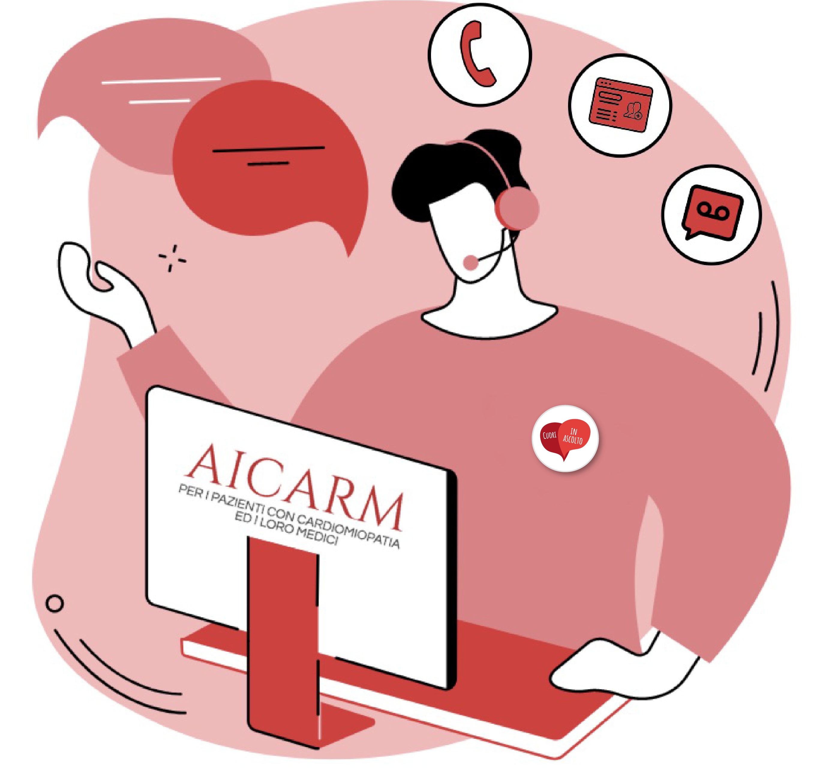 Cuori in Ascolto è il servizio gratuito realizzato da AICARM APS per dare sostegno a chi, pazienti o loro familiari, è coinvolto nell’esperienza di Cardiomiopatia.