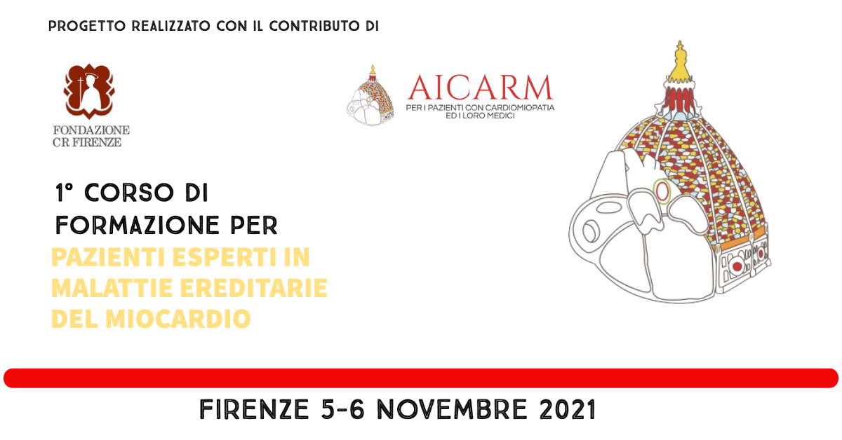 Siamo lieti di annunciare la prima edizione del Corso di formazione per Pazienti esperti in malattie del miocardio che si terrà a Firenze il 5 e 6 novembre 2021 nella sala Folco Portinari gentilmente messa a disposizione dalla Fondazione Cassa di Risparmio di Firenze.