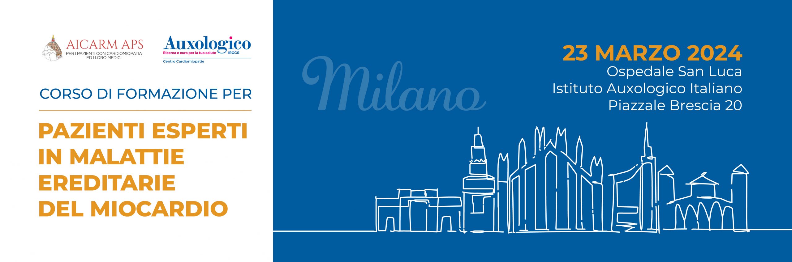 Siamo lieti di annunciare il Corso di formazione per Pazienti esperti in malattie del miocardio che si terrà a Milano il 23 marzo 2024 presso Ospedale San Luca, Istituto Auxologico Italiano, Piazzale Brescia 20, 20149 – Milano – Sala riunioni piano ottavo.