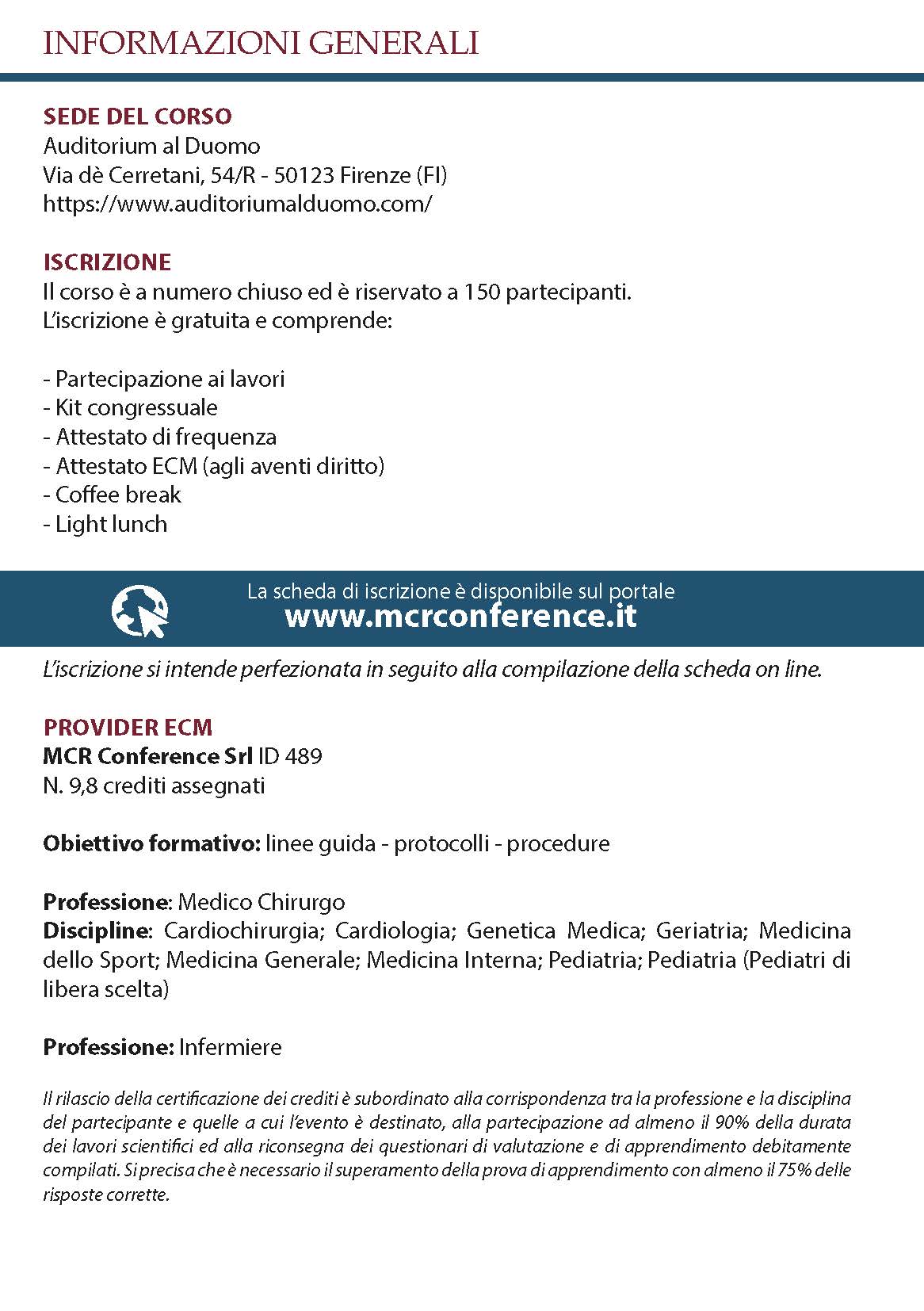 Il corso si propone di fornire ai partecipanti un quadro esauriente ed aggiornato sulla fisiopatologia, diagnostica e trattamento di pazienti con Cardiomiopatie a fenotipo ipertrofico e Amiloidosi, trasmettendo l’esperienza clinica e di ricerca maturata in oltre 40 anni nel Centro di Firenze a Careggi e al Meyer, con il prezioso contributo di esperti provenienti da prestigiose istituzioni nazionali. Le tematiche trattate sono estremamente ampie, e spaziano dalle scienze di base alla cardiochirurgia, dalla diagnosi genetica alle nuove prospettive farmacologiche e di terapia genica. I Workshop sono pensati per offrire una panoramica di casi clinici, con discussione delle varie opzioni possibili nel processo decisionale clinico terapeutico, lavorando anche in piccoli gruppi, con la valutazione dell’ecocardiogramma sul paziente e di immagini RMN, fino alla interpretazione dell’analisi genetica. Tutto il personale docente ha una lunga e specifica esperienza nel settore, ed è specificamente istruito a mantenere un taglio estremamente pratico, informale ed interattivo durante le relazioni. La novità di questa edizione è la partecipazione diretta di rappresentanti delle associazioni dei nostri pazienti, un contributo prezioso per chi voglia coltivare un “cardiomyopathy mindset” davvero a tutto tondo.